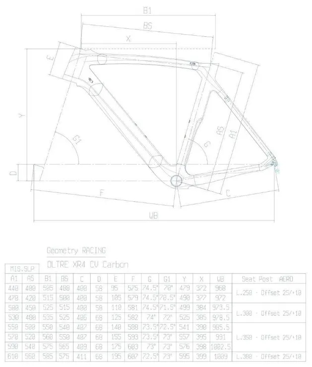 - Ram Oltre XR4 carbon w/Countervail, mechanical/electronic shifting compatible, head tube 1.4" - 1.1/8", direct mount brakes, PressFit 86,5x41 mm BB