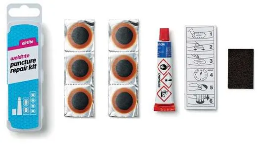 Innehåller: 4st små lappar och 2st större. 1st limtub. 1st sandpapper och två ventilgummi.