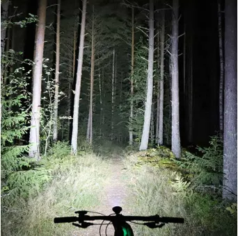 Både närzon, sidozoner och huvudzon blir kraftigt upplysta med en jämn fin ljusbild. Om du inte cyklar så snabbt räcker denna gott och väl! En lampa som absolut fungerar för nattcykling ute i terrängen! Visst, det finns absolut starkare lampor – men du kommer definitivt inte att sakna ljus i skogen med den här.