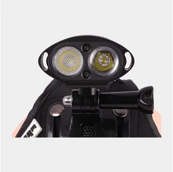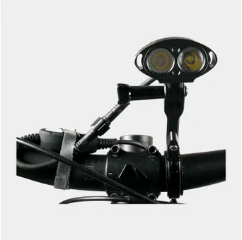 Den har 4 olika effektlägen för att öka batteritiden / minska ljuset och den går automatiskt ner i ett batterisparläge vid 10% batterikapacitet. Du fäster enkelt batteriet på ramen – eller så har det i ryggsäcken.