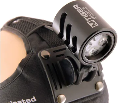 Populära M-Tiger DS är en mångsidig och kraftfull lampa som monteras som pannlampa, hjälmlampa eller direkt på styret. Den har två Cree XML-U3 LED-ljuskällor med olika spridningsvinkel och levererar hela 1800 lumen i upp till 150 minuter när du kör med full styrka.