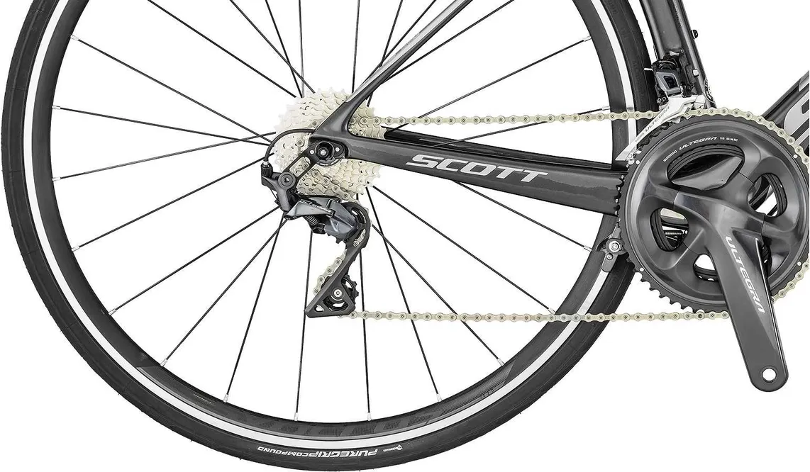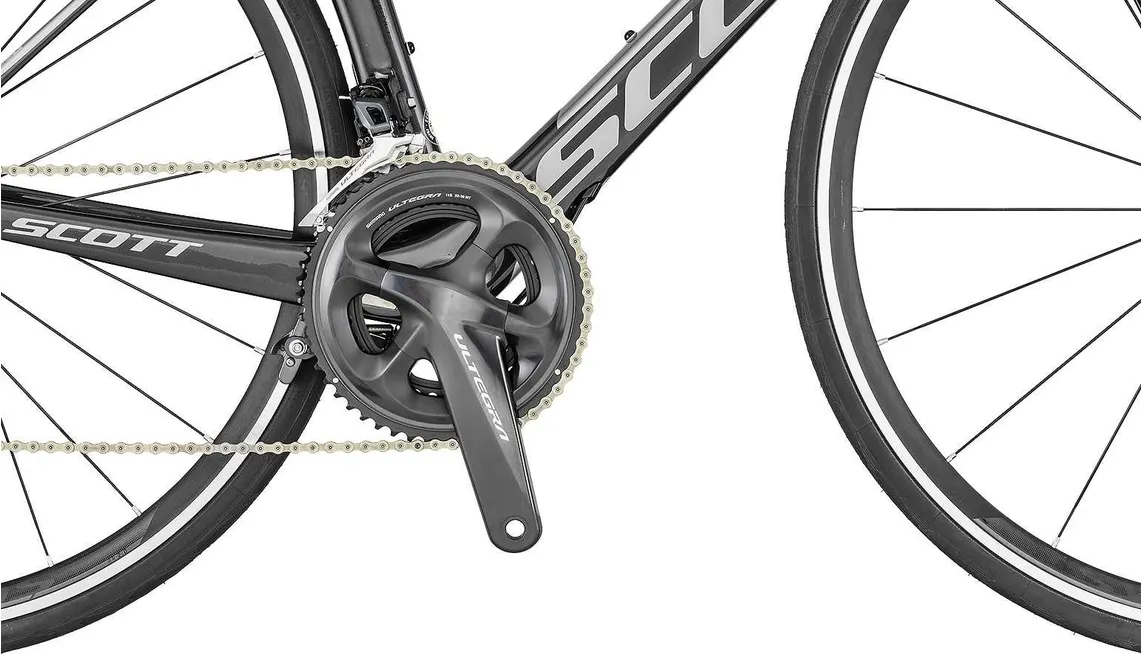 Under motorhuven sitter en extremt pålitlig drivlina från Shimano (Ultegra) med 22 växlar kombinerat med beprövade komponenter som ytterst sällan krånglar. Visst, det är kanske inte ren proffsklass, men det är bra nära och cykeln har en extremt välbalanserad mix av vassa komponenter i fina material som är betydligt vassare än genomsnittet. Man skulle kunna kalla det för det imponerande lätta prylar med hög precision från de övre hyllorna hos både Shimano och Syncros.