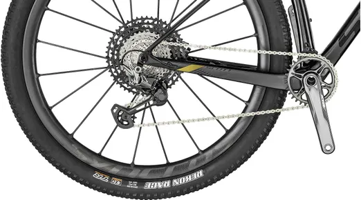 Ovanpå detta har den en extremt kompetent drivlina från Shimano (XTR) med 12 växlar som levererar driftsäker prestanda i form av problemfri funktion och ett brett register. Det här ren proffsklass och cykeln har en extremt välbalanserad mix av pålitliga komponenter från de översta hyllorna hos både Shimano, FOX och Syncros. Mest av allt älskar den speed och den har därför begåvats med kraftfulla skivbromsar från Shimano (XTR) som ser till att du snabbt får stopp (kan trots allt behövas ibland) och alltid har maximal bromsverkan oavsett om det är lerigt, regnigt eller slaskigt i spåret.