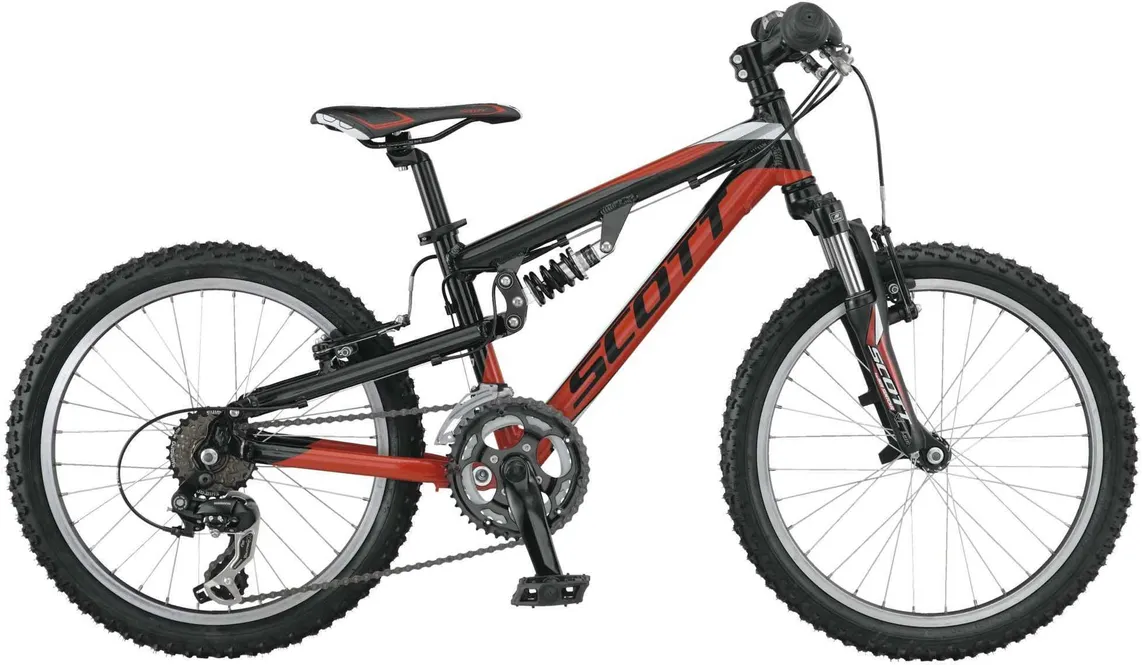 Ställ en fråga om Scott Spark Jr20 svart/rödUnderbar barncykel, Inga problem för barnen att hänga med på turen - 12 växlat Shimano Altus RD-M370 med vridväxelreglage för små händer - Lätt aluminiumram med fjädring fram och bak som faktiskt fungerar. 12,00kg (Cyklistens längd 120-135cm).