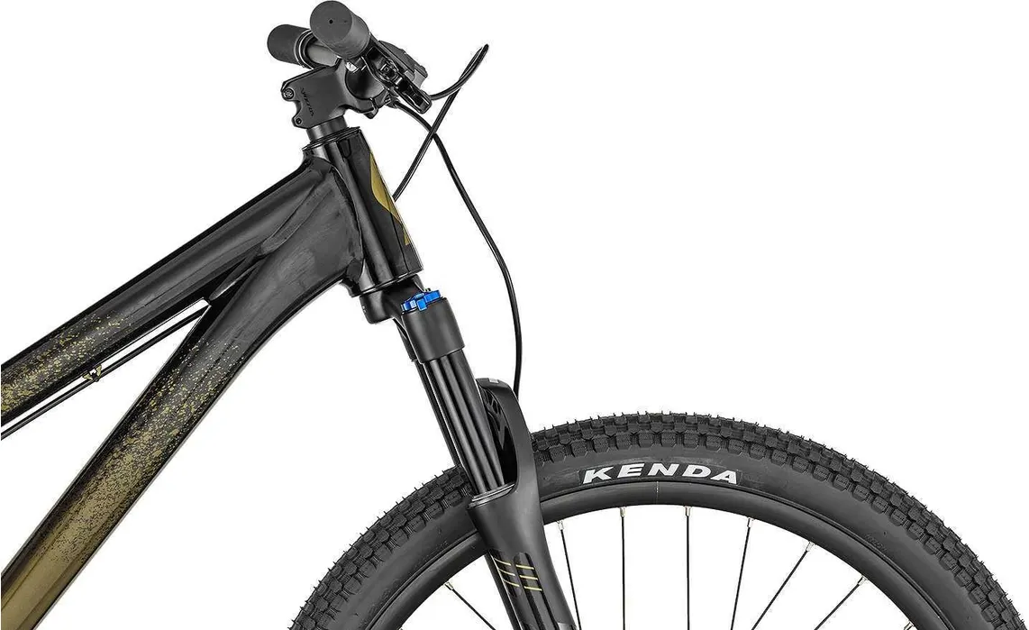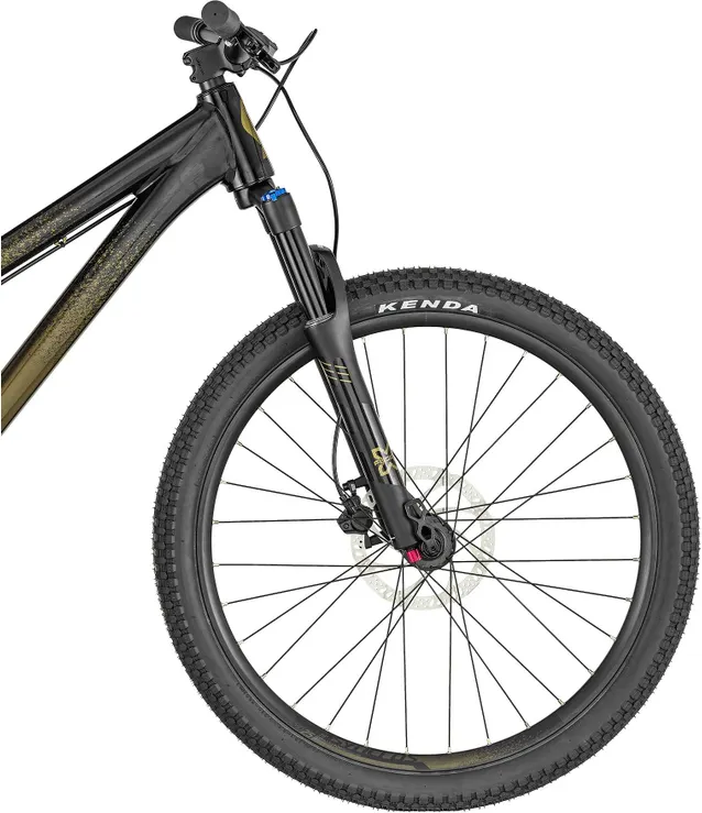 Modellen är även utrustad med en fin dämpad luftgaffel från X-Fusion (Slant DJ) med 100 mm slaglängd, vilket avsevärt ökar komforten och dessutom skapar möjlighet att kunna svälja långa drop samt bekvämt kunna rulla fram på riktigt stökigt underlag. Tack vare ett par kraftfulla hyrauliska skivbromsar med distinkt känsla så har du alltid tillgång till effektiv bromsverkan oavsett om det är dammigt, lerigt, regnigt eller slaskigt i parken