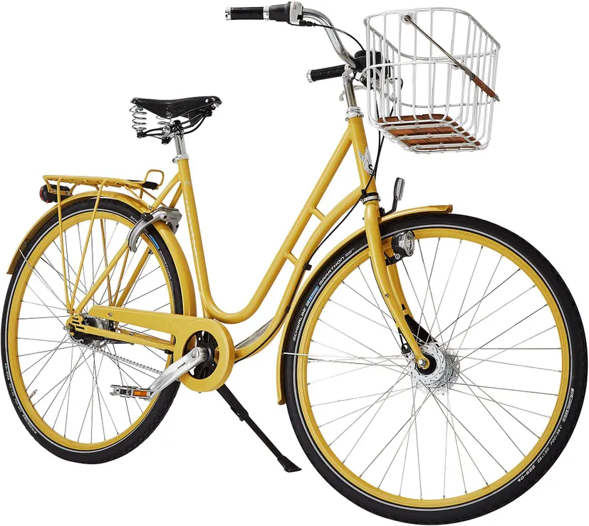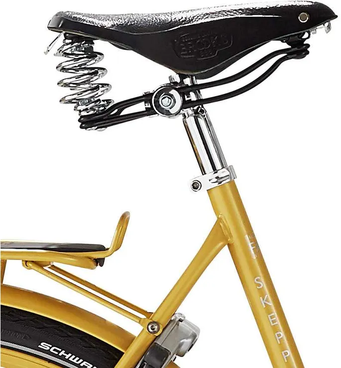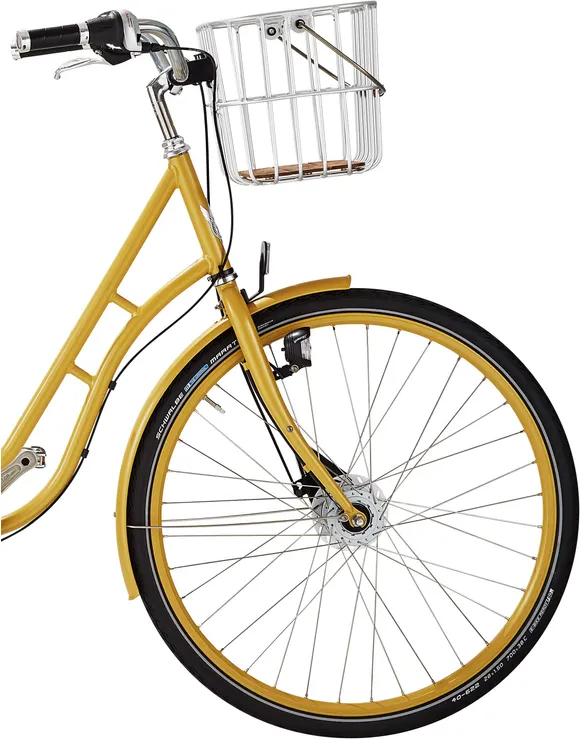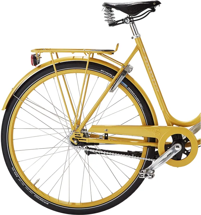 Korgen, sadeln och handtagen kommer från Brooks, och de lite bredare däcken ger en otroligt bekväm cykling.