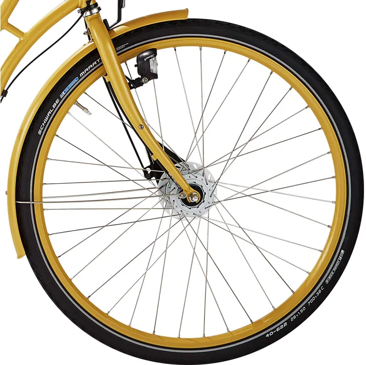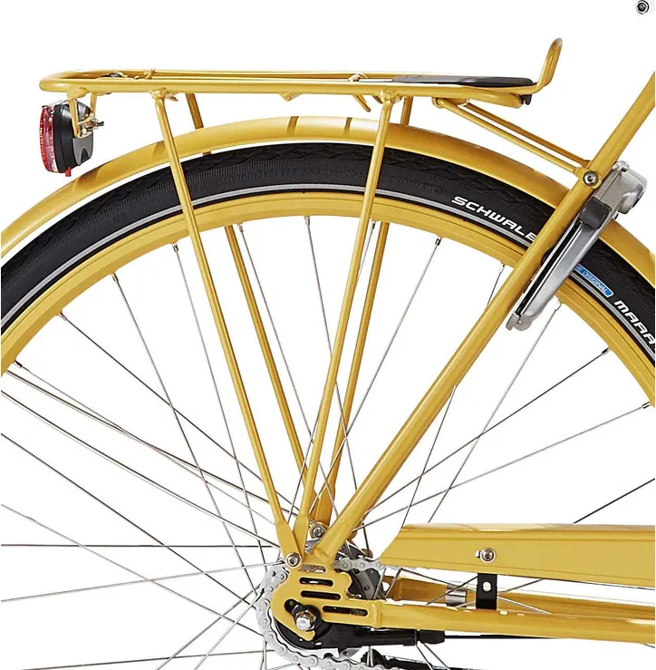 Ställ en fråga om Skeppshult dam Face Stockholm 7-växlad brassSkeppshult Face Stockholm är en klassisk damcykel, men med massor av färg och glädje sprinklad på toppen. Den är utrustad med 7 Shimano Nexus-växlar med fotbroms, godkänt lås, belysning med navdynamo, skärmar, pakethållare och massor av annat (allt du ser på bilden ingår givetvis).