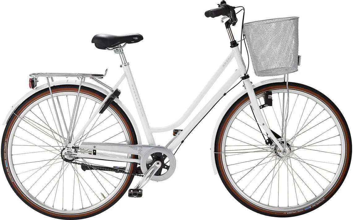 Skeppshult Nova är en riktigt klassisk damcykel. Den är fullt utrustad med allt du behöver - 3 Shimano Nexus-växlar, fotbroms, korg, pakethållare, skärmar, belysning, kedjeskydd, stöd, godkänt lås och säkerligen något mer som vi missar.