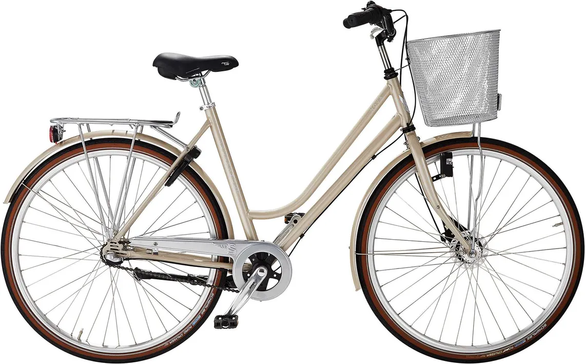 Skeppshult Nova är en riktigt klassisk damcykel. Den är fullt utrustad med allt du behöver - 3 Shimano Nexus-växlar, fotbroms, korg, pakethållare, skärmar, belysning, kedjeskydd, stöd, godkänt lås och säkerligen något mer som vi missar.