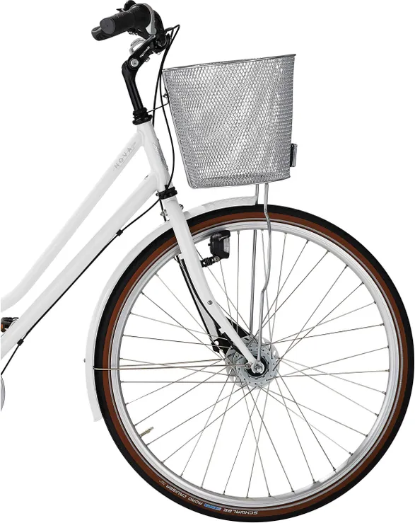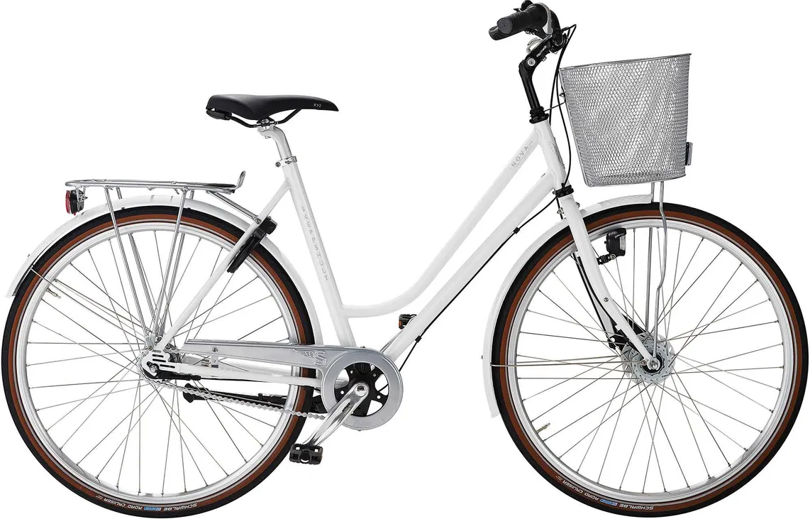Ställ en fråga om Skeppshult dam Nova Premium 7-växlad fjällvit metallSkeppshult Nova Premium är en riktigt klassisk damcykel med ett gott hantverk och massor av cykelkänsla. Utrustningen är i grunden även den klassisk - 7 shimano Nexus-växlar, fotbroms bak, rullbroms bak, Schwalbe-däck och massor av extrautrustning såsom pakethållare, skärmar, kedjeskydd och belysning. Men - Premiumvarianten är mer än så! Du får en ställbar styrstam för att enkelt kunna justera din sittställning från sportig till bekväm, du får en antikorrisionskedja som är så nära rostfritt man kan komma på en kedja. Du får dessutom belysning med navdynamo!