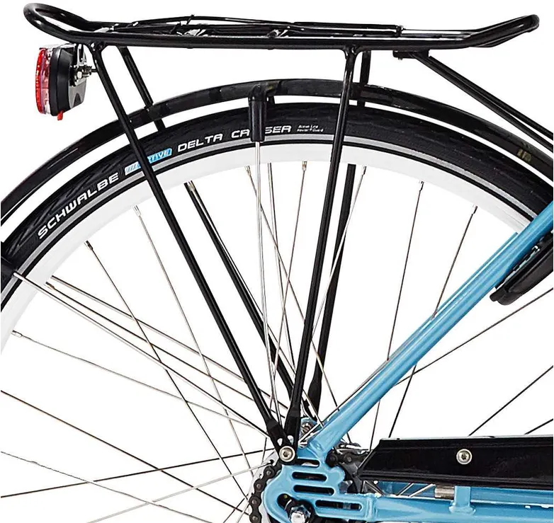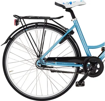 Cykeln är både lättmanövrerad och rolig att cykla på som få, och samtidigt robust och nästan stridsvagnstålig! Den är generöst fullutrustad och har 3 navväxlar med fotbroms, effektiv skivbroms fram, belysning, pakethållare, stöd och cykelkorg.
