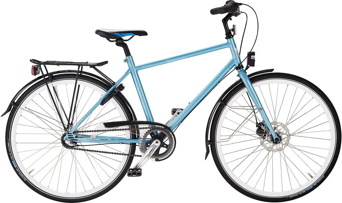 Cykeln är rolig att cykla på som få, och samtidigt robust och tålig! Den är utrustad med 3 växlar med vridreglage och fotbroms från Shimano Nexus. Skivbroms fram. Batteribelysning fram och bak, pakethållare, skärmar, kedjeskydd, cykelkorg och godkänt lås ingår.