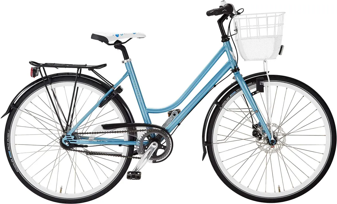 Cykeln är rolig att cykla på som få, och samtidigt robust och tålig! Den är utrustad med 7 växlar med vridreglage och fotbroms från Shimano Nexus. Skivbroms fram. Batteribelysning fram och bak, pakethållare, skärmar, kedjeskydd, cykelkorg och godkänt lås ingår.